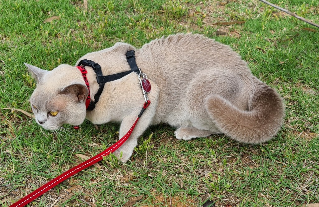 I took Tilly for a walk past the closed pub. There are three sheep statues in the park – a ram, ewe and lamb. These would not be very interesting except for Tilly’s reaction to them. She furred up and hugged the ground. I was worried she had seen a snake or a dog that I had not noticed.