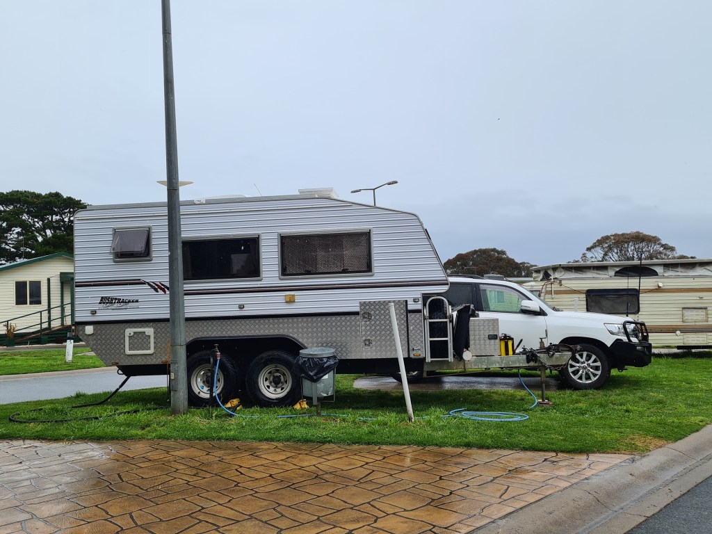 The Mittagong CP was already booked out, so we settled on a powered site at the Big4 Governor’s Hill Carapark in Goulburn. We like the fact the caravan park is on a hill as it poured with rain from the minute we left Jugiong until we reached Goulburn. Even the Hume Hwy has some potholes and rough section of roadway.