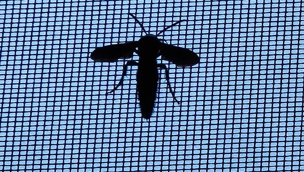 Back at home I returned to the challenging job of securing the top frame of the front veranda screen. This missing screen allowed this creature to fly onto the veranda. We quickly shut the doors until I could catch it and release it.