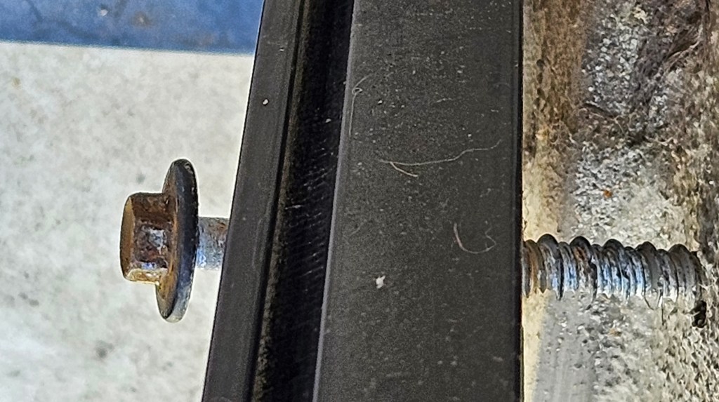 I had to go to our local specialist nuts and bolts shop for different fixings, but ran out of time to see if they will work. Both sides of the frame had to be removed, but one bolt would not come out. I resorted to the angle grinder, so now will have to drill another hole to secure the bottom of the side rail.