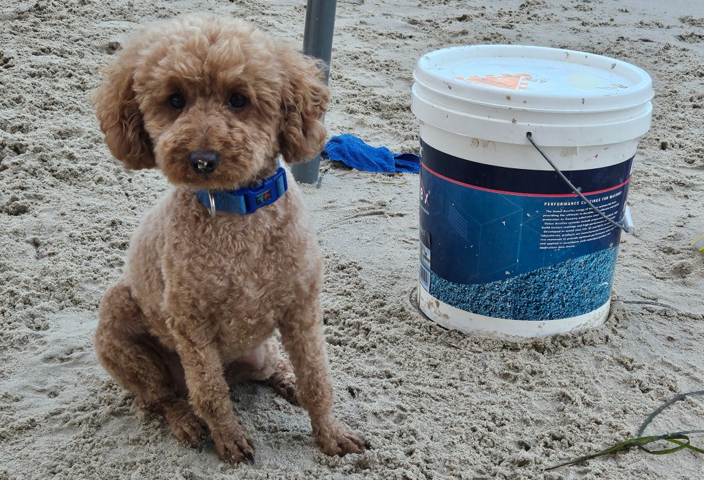 It wasn’t an ideal fishing day because of the wind, but I took Bluey to the river to see if anything was biting. I spread a towel on the sand, and he immediately laid on it. People walking past commented that he is so well-behaved. He had a bit of a run with one of his friends, but the big dogs were playing with each other, so he kept out of their way.