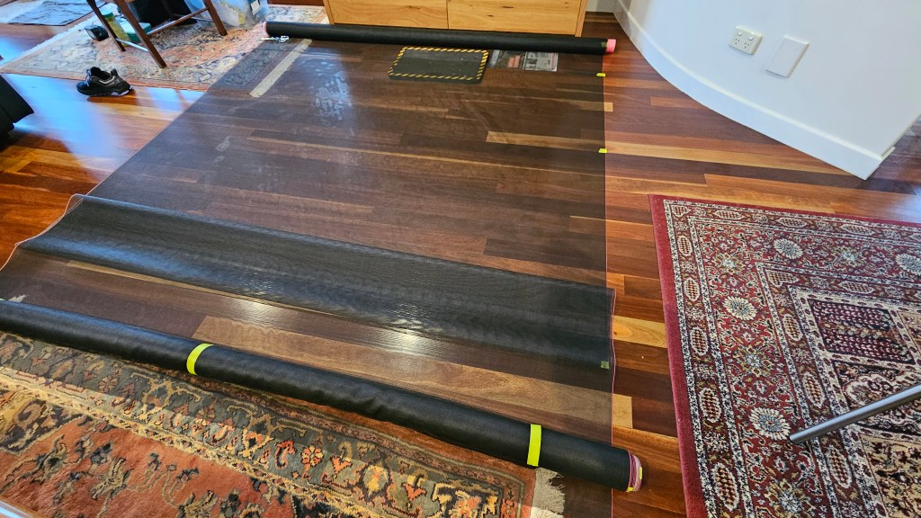 To cut the roll of flyscreen, I rolled it out on the loungeroom floor. I double-checked my measurements before cutting the lengths needed for the remaining panels.