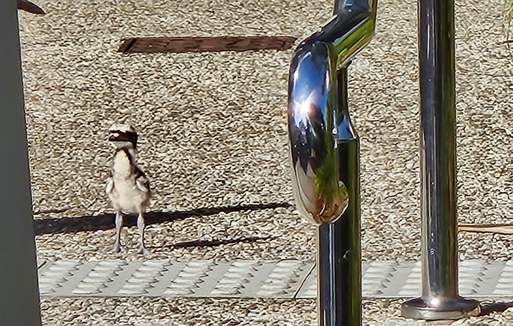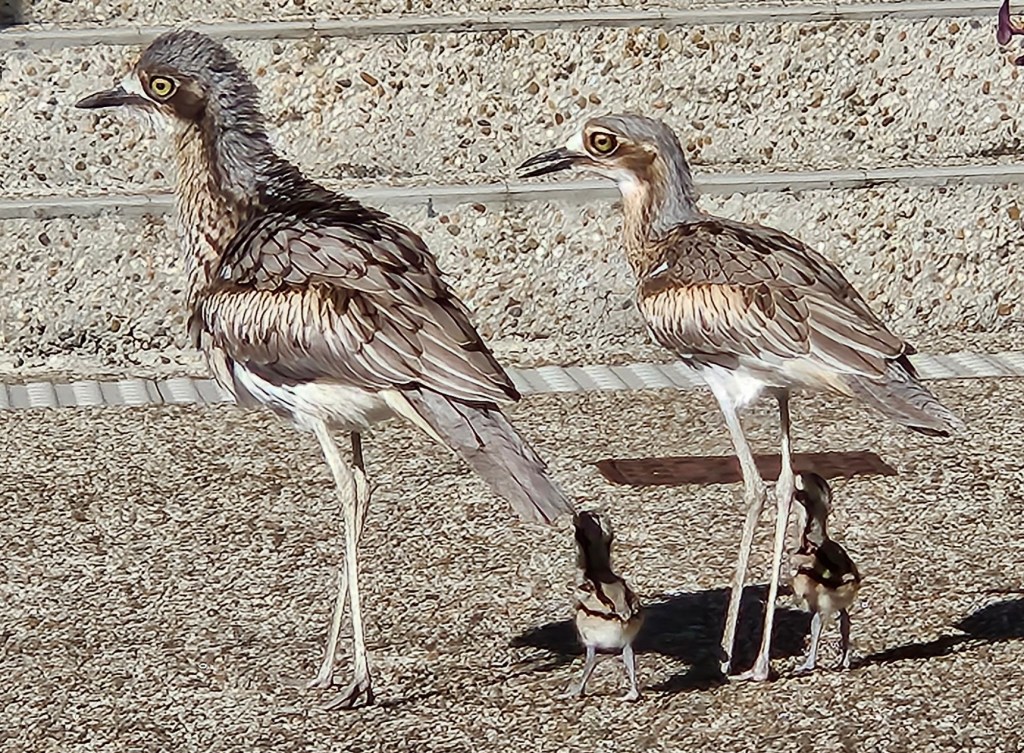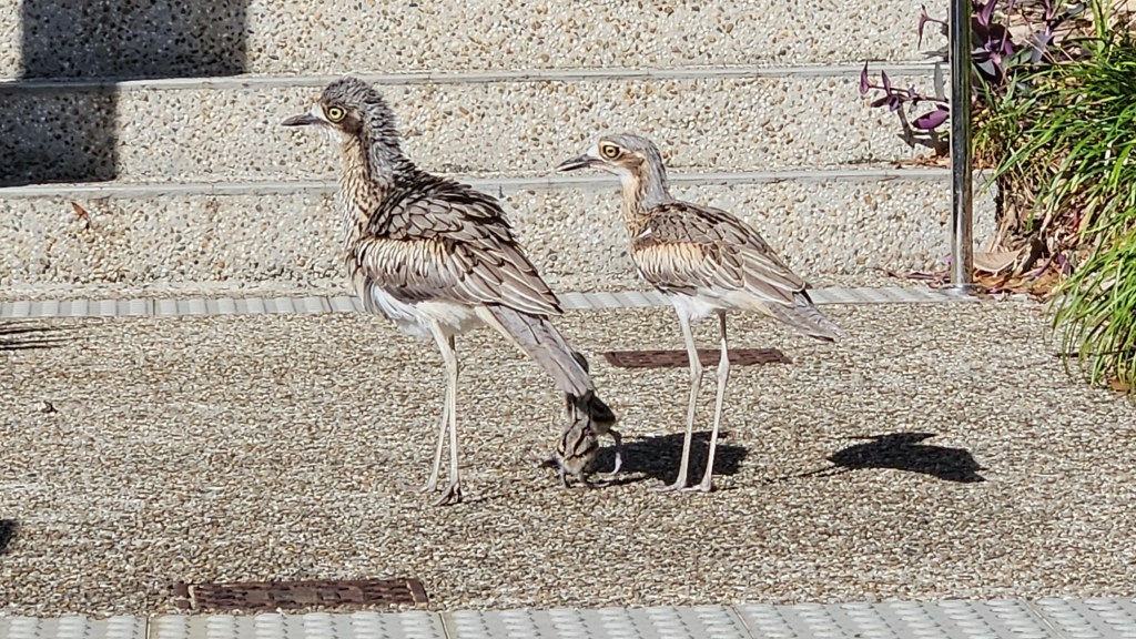 We drove to the Sunday markets at HOTA about 7 am. As we wandered around, we saw this stall holder trying to help very young curlew chicks up the steps while the parents were flapping their wings at him.