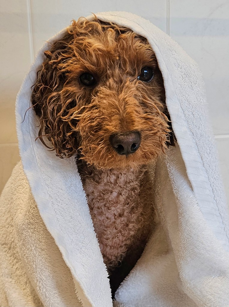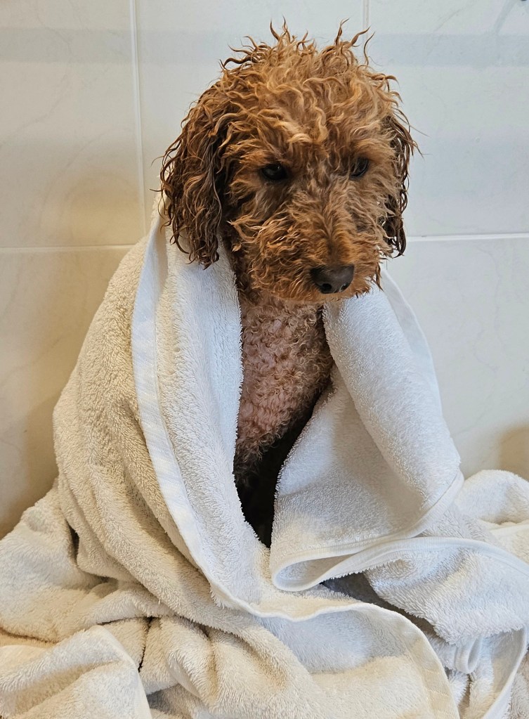 Today was Bluey’s bath day. After suffering that event, he had to endure me trimming his claws and cutting fur from his paws.