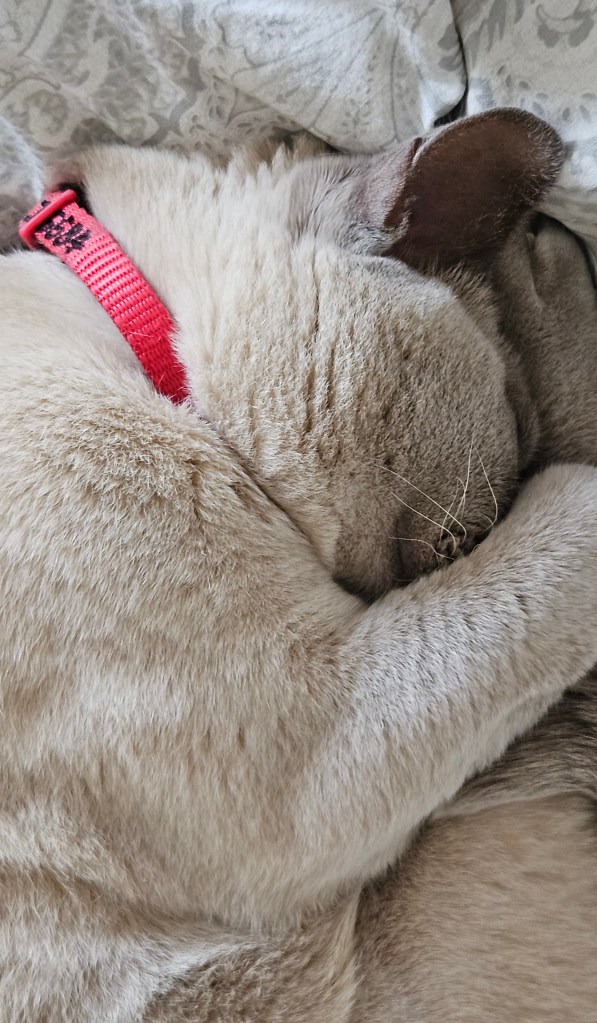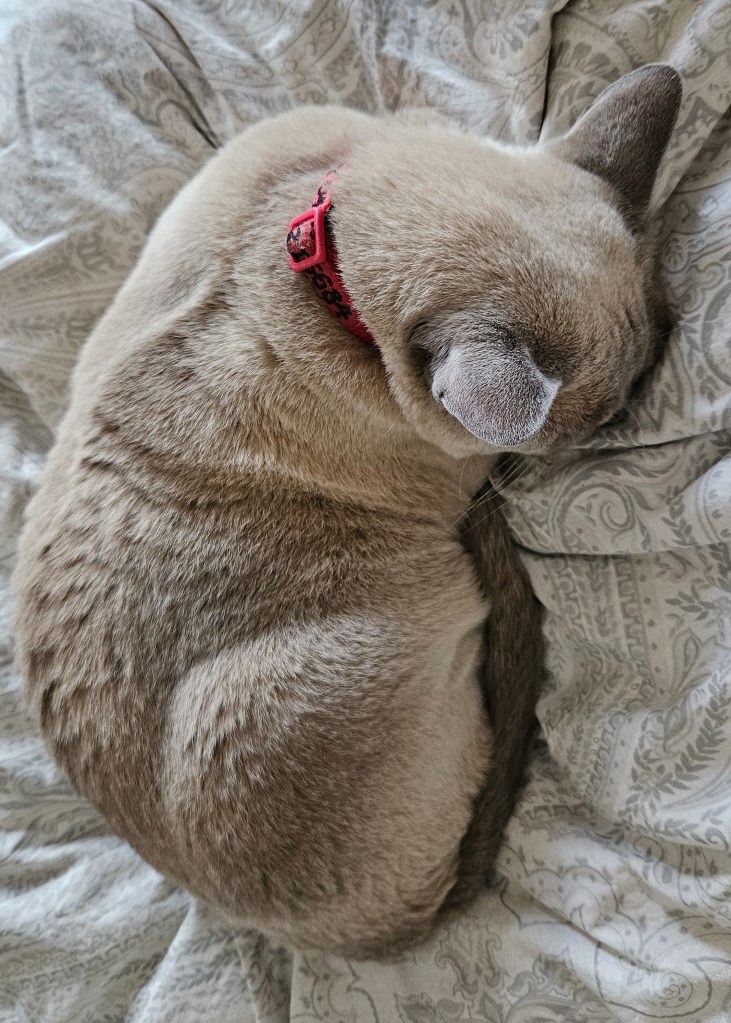 Earlier this afternoon she was outside when the rain started, hiding on the small veranda. I had to unlock the door to get her inside because she wasn’t going to go into the rain to get to the pet door. It wasn’t long before she was sound asleep on our bed.