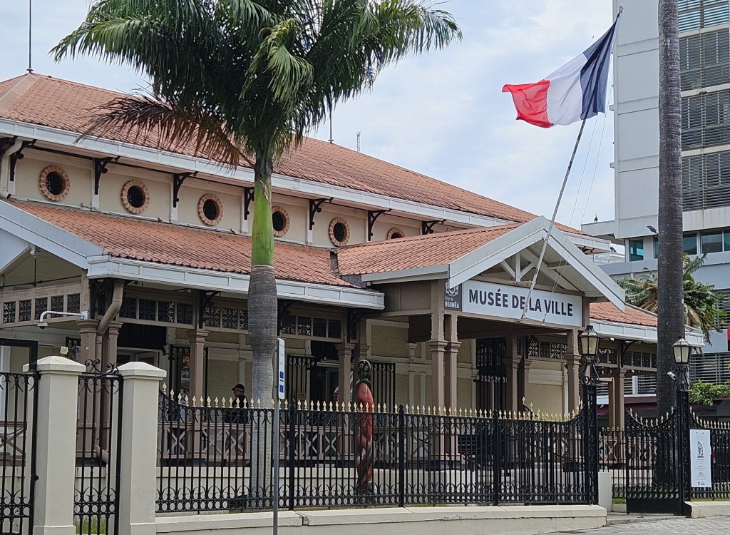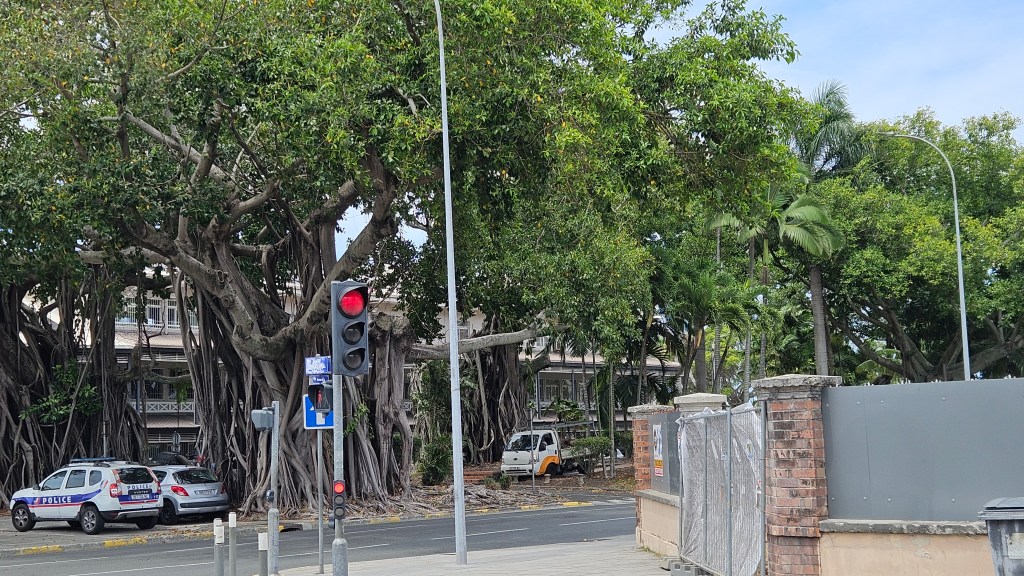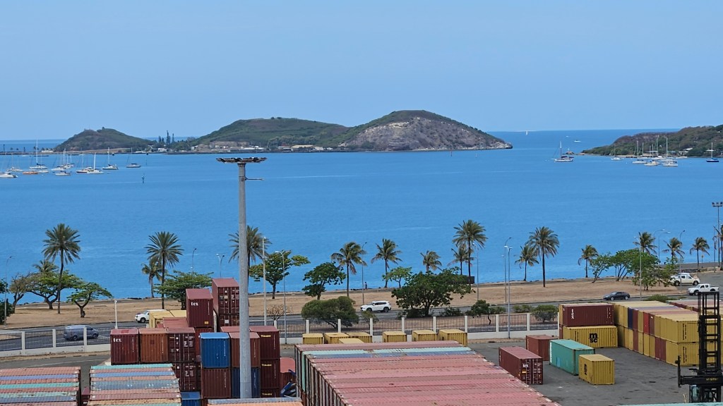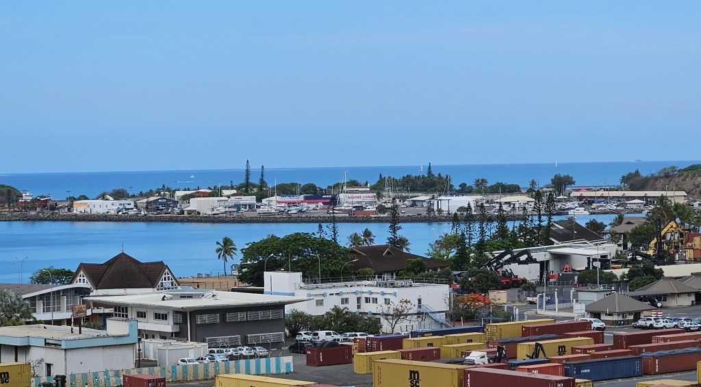 We noticed a significant police presence around the town. A police van with several officers was stopped under shade in the main park. A meeting or demonstration in support of independence was taking place near the port, with many participants carrying the Kanak independence flag. Both the French Tricolour and the Kanak flags can be flown, but we only saw the Tricolour on official buildings.