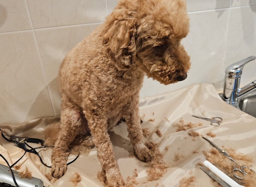I gave Bluey a trim and bath before settling in for the afternoon to watch the test cricket. He has become such a lap dog that he gets onto the couch and nudges my arm out of the way so he can get in closer.