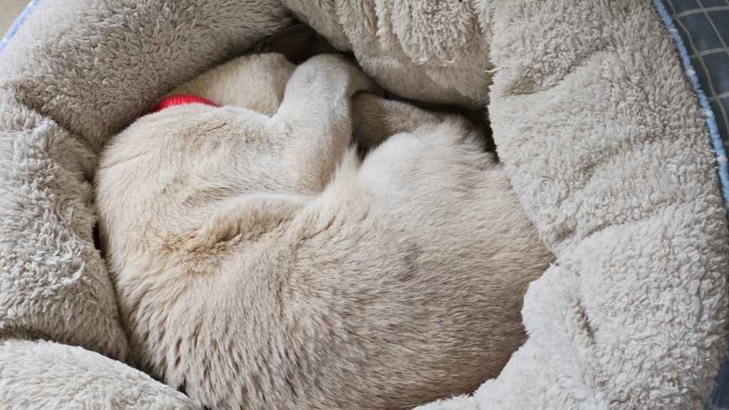 Tilly has been very quiet most of the day. I went looking for her and she was sleeping so soundly that she was not aware I was there. She might have had a busy night guarding downstairs.