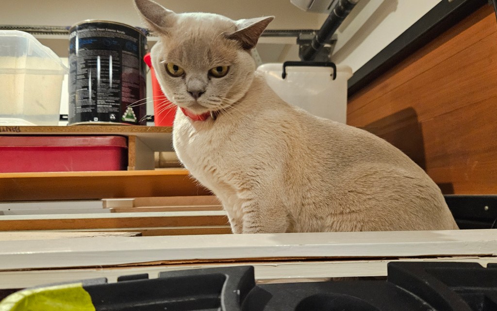 Tilly has kept close to me all day. When we were dealing with the super-excited Bluey, she showed off running upside down around the bottom of our mattress. She was on top of my garage shelves and snuggled down in my study.