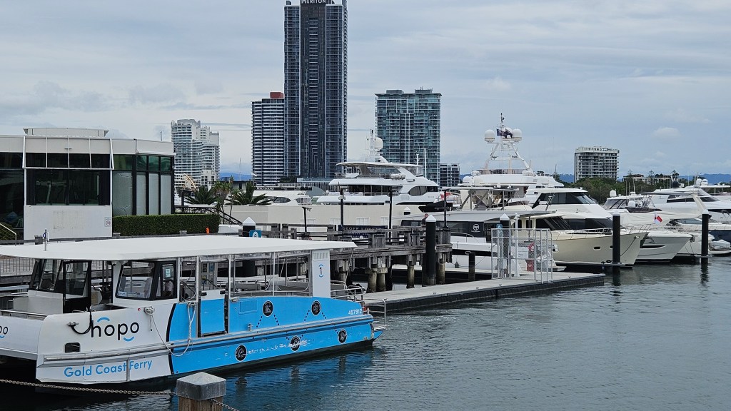 We took ourselves out for lunch at Ladybird, an Asian-fusion restaurant in the former Palazzo Versace building, now the Imperial Hotel. The venue and service were excellent, but the food only good as rated by us. We drove there but could have caught hopo, the Gold Coast ferry service.
