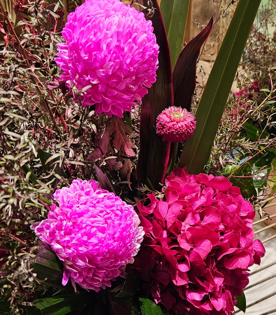 We went out to dinner with friends at the casino. There was a lovely display of pink flowers in the foyer.