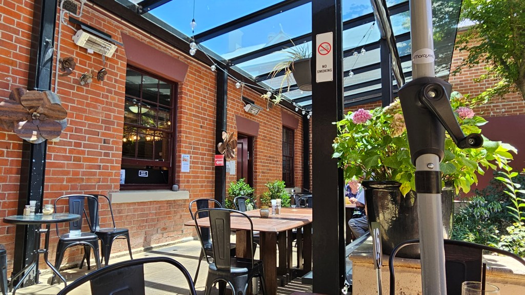 After having a short walk in Tenterfield, we ate at the Courtyard Cafe in the historic School of Arts building. Anita’s pie was a bit dry, but my New York cheesecake was great. It is a very dog-friendly cafe with a large undercover area.