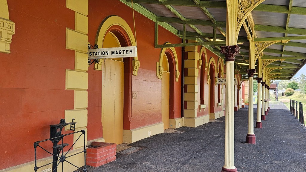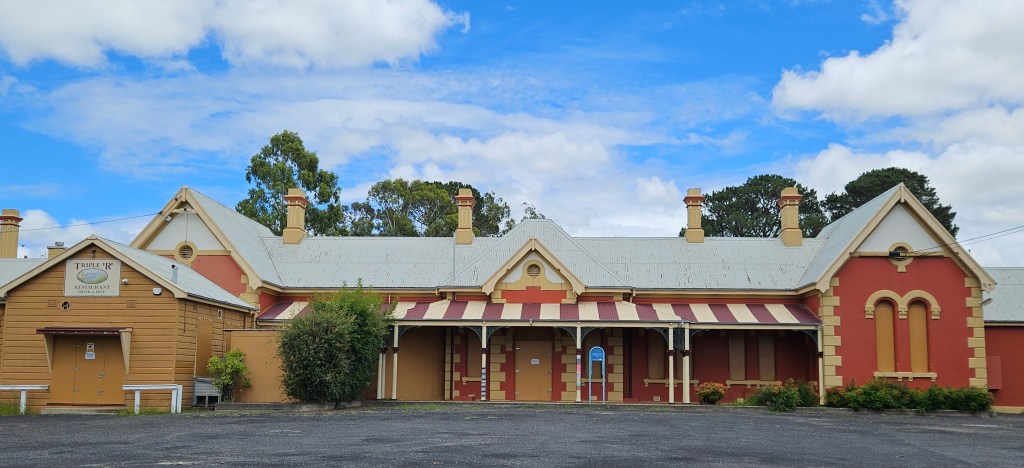 At the Visitor Information, we got some maps and information about walks and drives around the local area. Our first stop was the Victorian era Railway Station which opened in 1884. After the line closed in 1989, the station was used as a restaurant, but that has since closed, and the building is boarded up. There is an interesting form of ventilation on part of the roof.