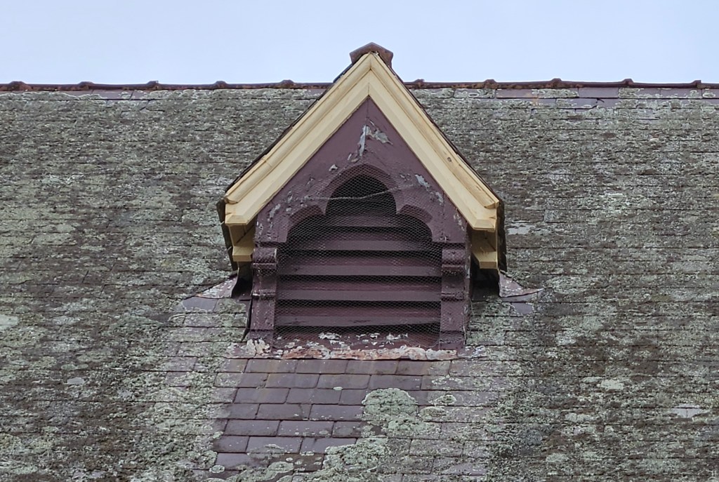 A few buildings still have their original slate roofs. Part of the roof of St Joseph’s Catholic Church shows the build up of lichen that can damage slate roofs.