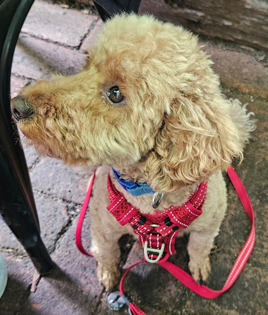 We bought two loaves of sourdough bread and a couple of treats to take with us. My muesli was a bit too rustic, and the yoghurt was not creamy like our favourite Farmers Union Greek style yoghurt. The poached pear was lovely and Bluey enjoyed a taste.