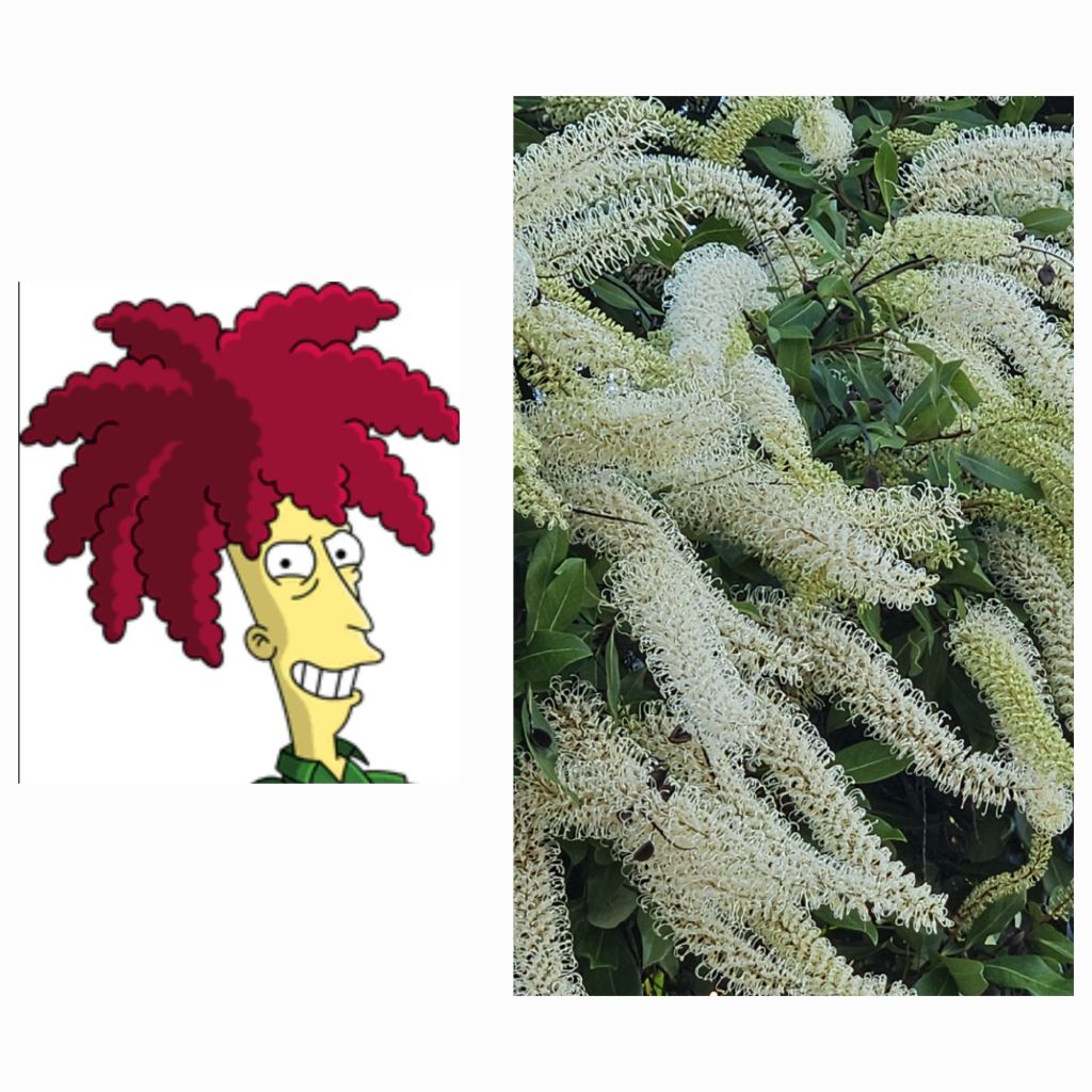 The tree on our nature strip is in flower. It reminds me of the hair worn by Sideshow Bob from the Simpsons!