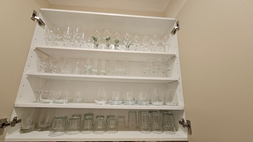 There are another 50 odd glasses in a different cupboard. When I asked Anita if we needed all of them for a household of two, she was unwilling to part with any of them!
