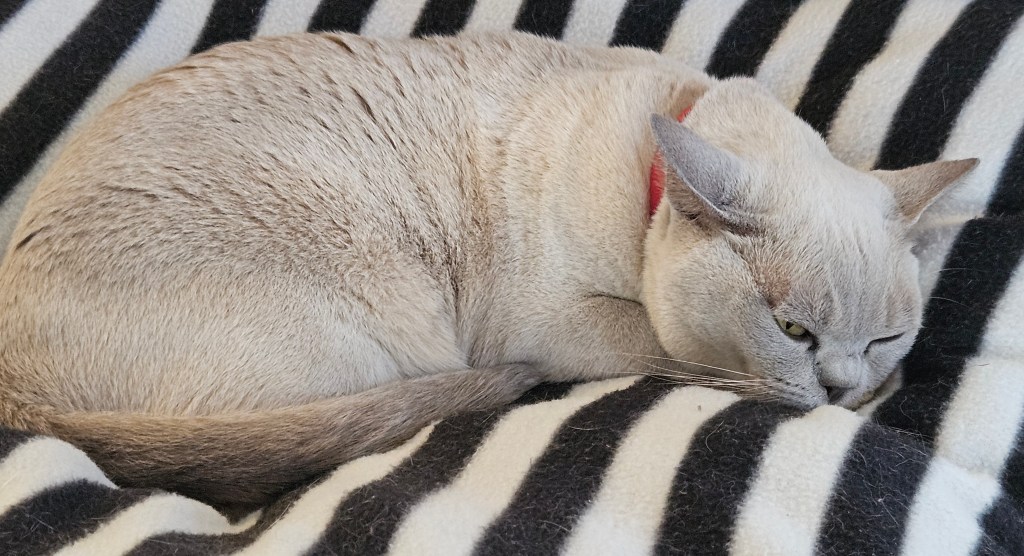 Once the cleaning was done, Tilly graced us with her company sleeping on the big bed. She half opened her eyes when I got close to her.