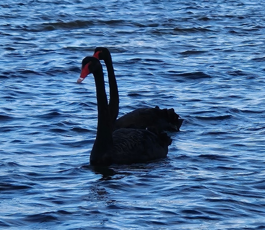We spotted this swan paddling by, but it turned into a double- headed swan, then became two swans.