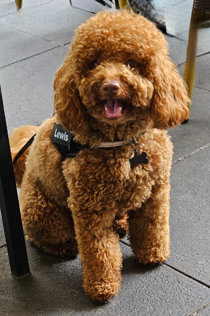 We took Bluey to breakfast on Saturday, and our neighbours sat nearby with Lewis, their toy poodle. Bluey was ho-hum about the other dog, but Lewis was very keen to get close to Bluey. He looks very different to Bluey as he is groomed by a Japanese woman who keeps his fur long.