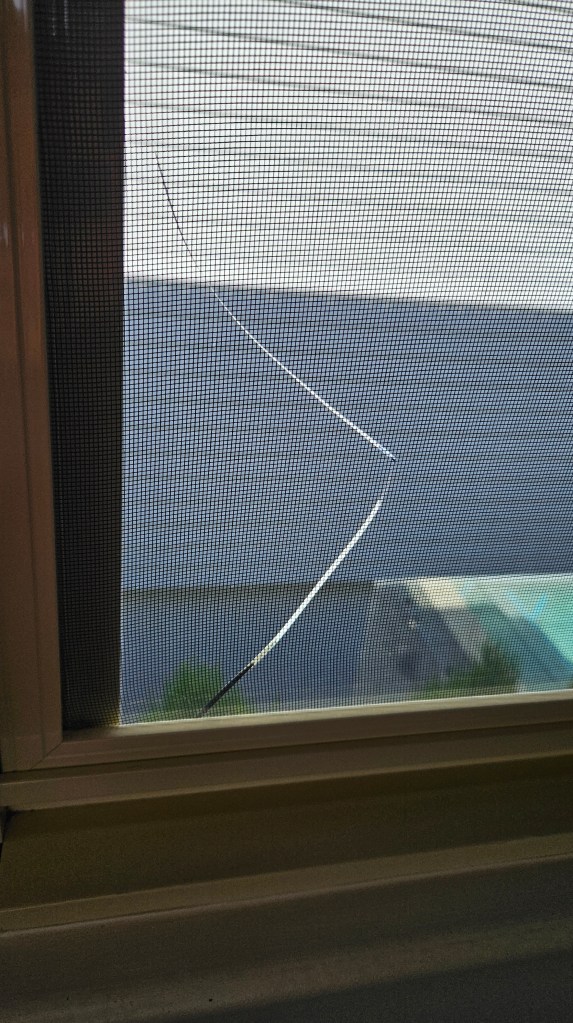 I lifted up one of the lounge room blinds and discovered this crack in one of our windows. It wasn’t there when the window film was applied, and we have no idea how it happened. Access from the outside for this window is challenging, so we put the blind down again!