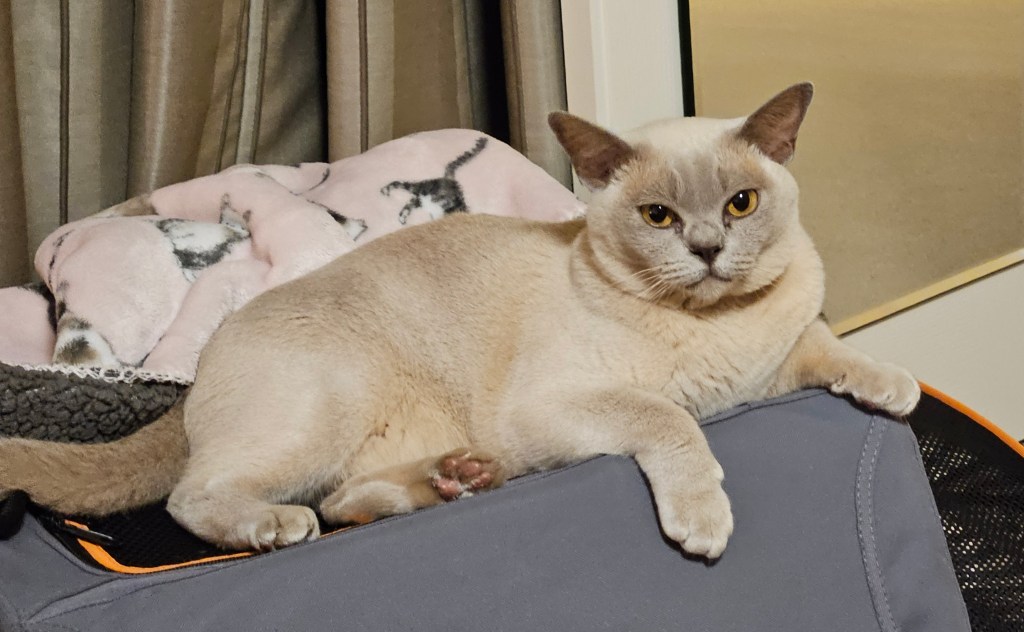Tilly tested limits by sitting at the dining table. She was on safer ground when on top of the critters’ crate.