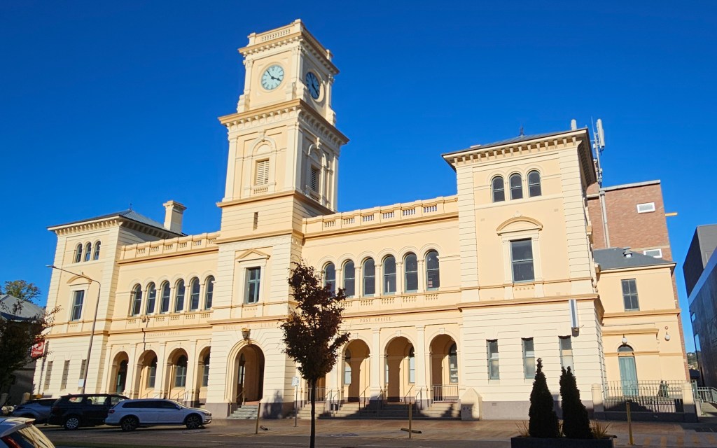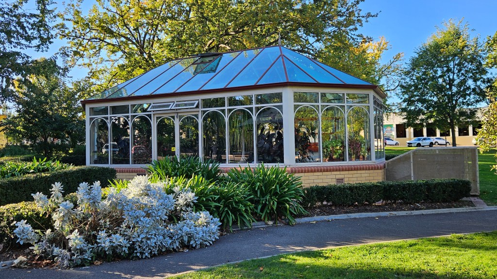 We decided to stop at or near Goulburn, and Anita discovered there are limited free camping spots at the Visitor Information Centre. We drove in, but all spaces were taken. We decided to stop to research plan B and were lucky to get a space created when a motorhome drove out. We are opposite an impressive park one block from the city centre.