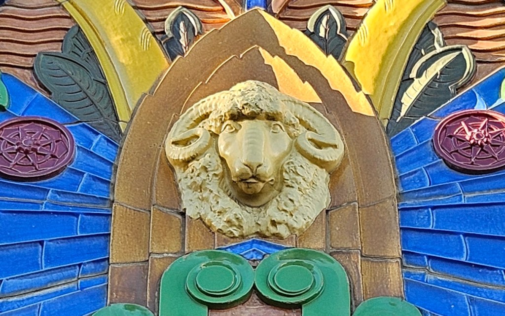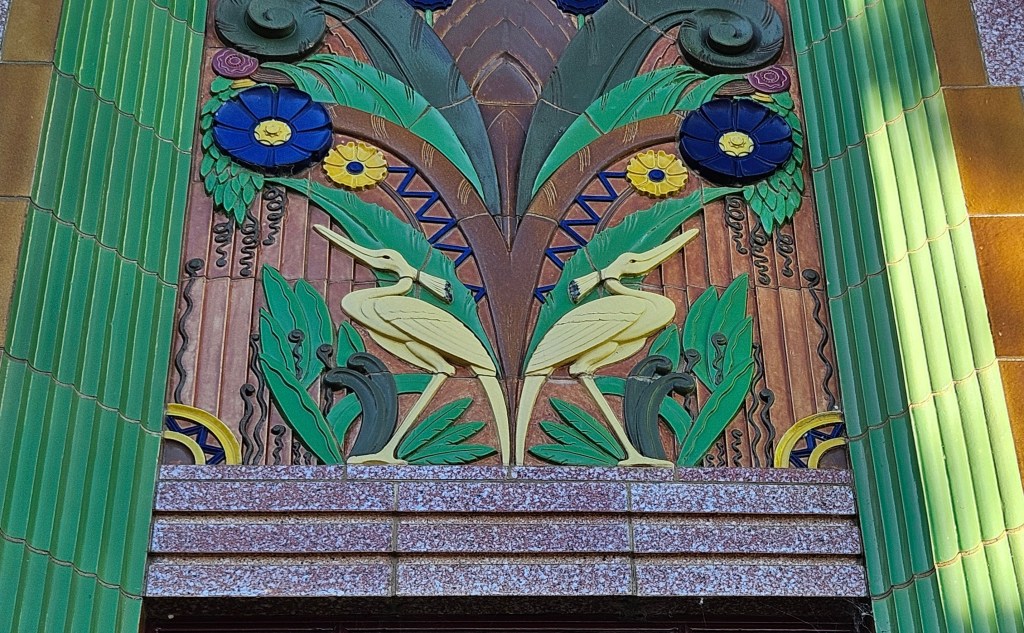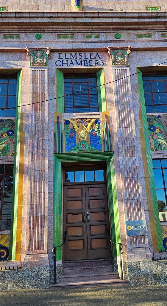 My favourite is the 1933 Art Deco Elmslea Chambers. The facade is a mix of pink granite and decorative colourful terracotta tiles. The building still has its original slate roof.