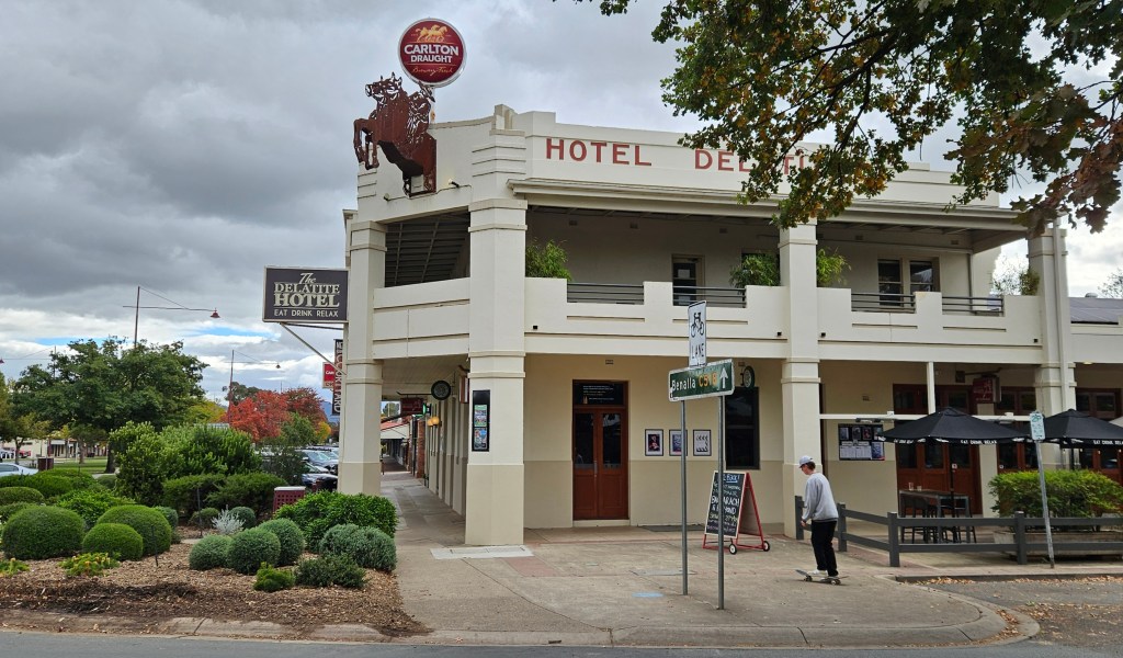 The wide streets have decorative gardens and trees on the centre islands. The original Hotel Delatite was opened in an iron shanty in the 1850s. The current building was remodelled in Art Deco style in the 1930s.