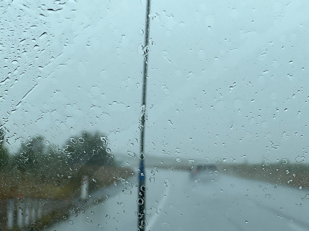 We left the rest area before 10am and drove through more mist and rain. Some drivers had no lights on, while others overtook us but moved into the left lane too close to the front of our car.