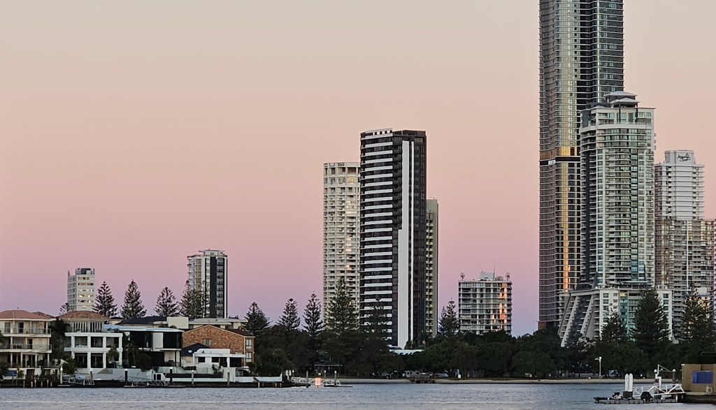 We have had some wonderful sunsets over the past week. While the sun sets in the west, our view is the the east where the sunset is reflected off clouds and buildings.
