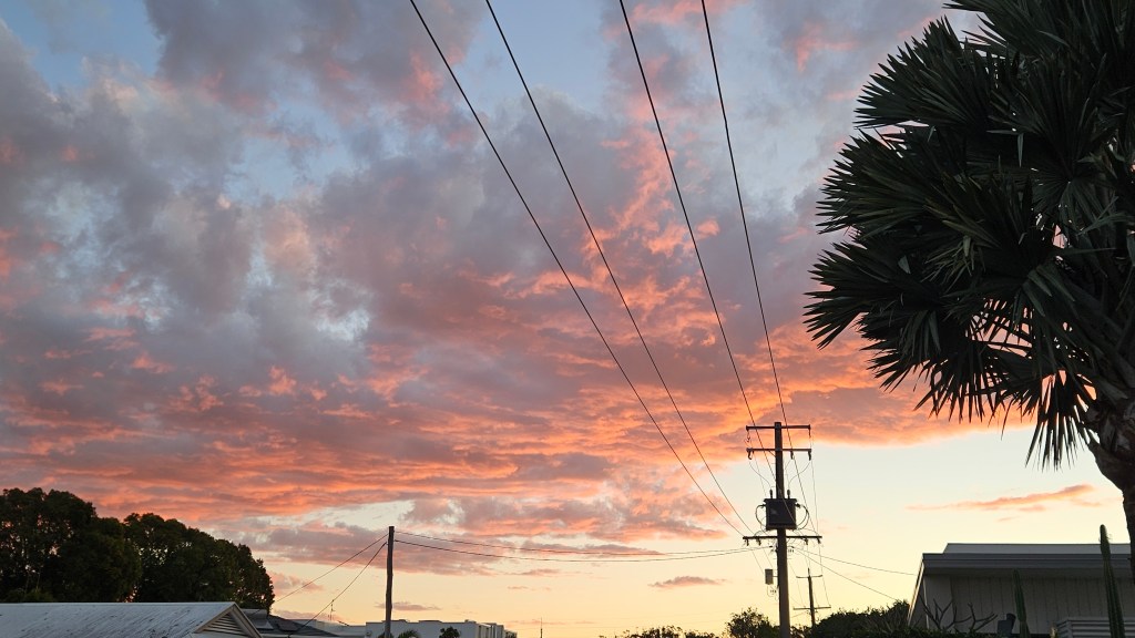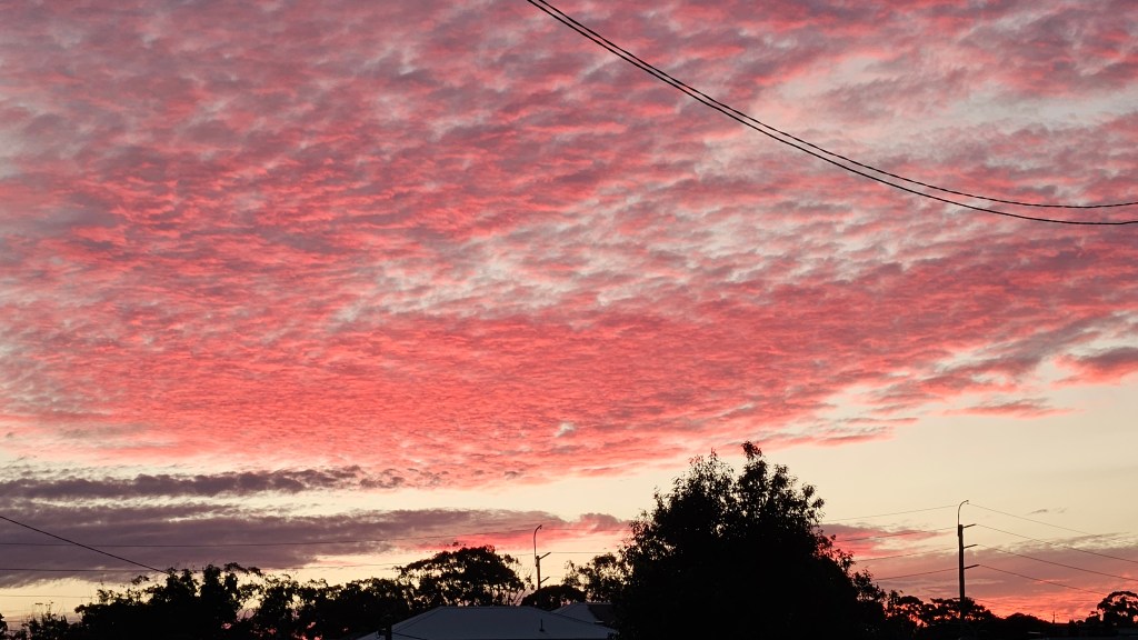 There has been no rain here since we have been home. There have been interesting cloud formations and sunsets. One morning we had to be up very early to book excursions on one of our cruises, so I have seen one sunrise.