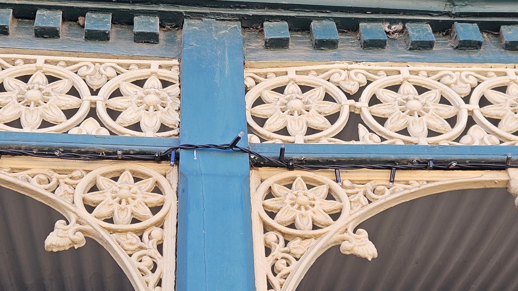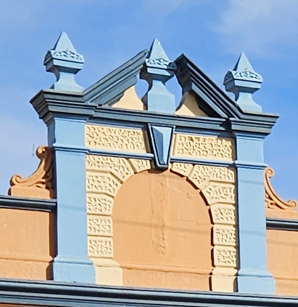 The Rising Sun hotel is for sale. Hopefully, someone will buy this business and continue to operate it as a hotel. The cast iron lacework is based on a representation of the sun.