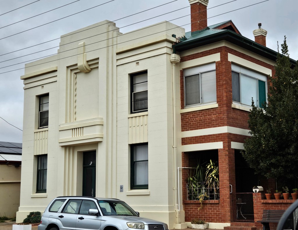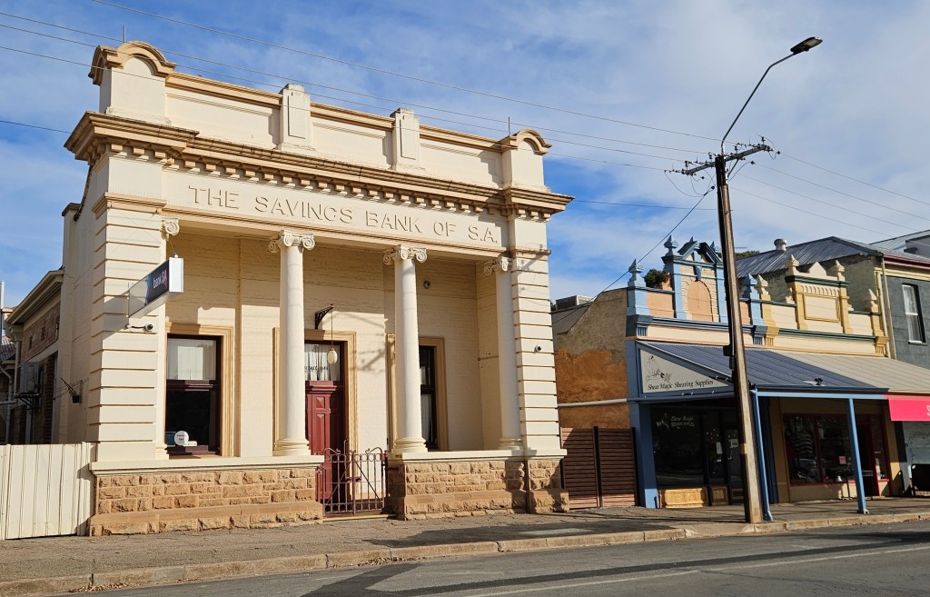 This impressive two storey Art Deco former bank was built in 1938 as a branch of the Bank ofAdelaide. The branch was closed in 1942 as part of wartime rationalisation. In November 2023 the bank building and attached residence was sold for $539,000.