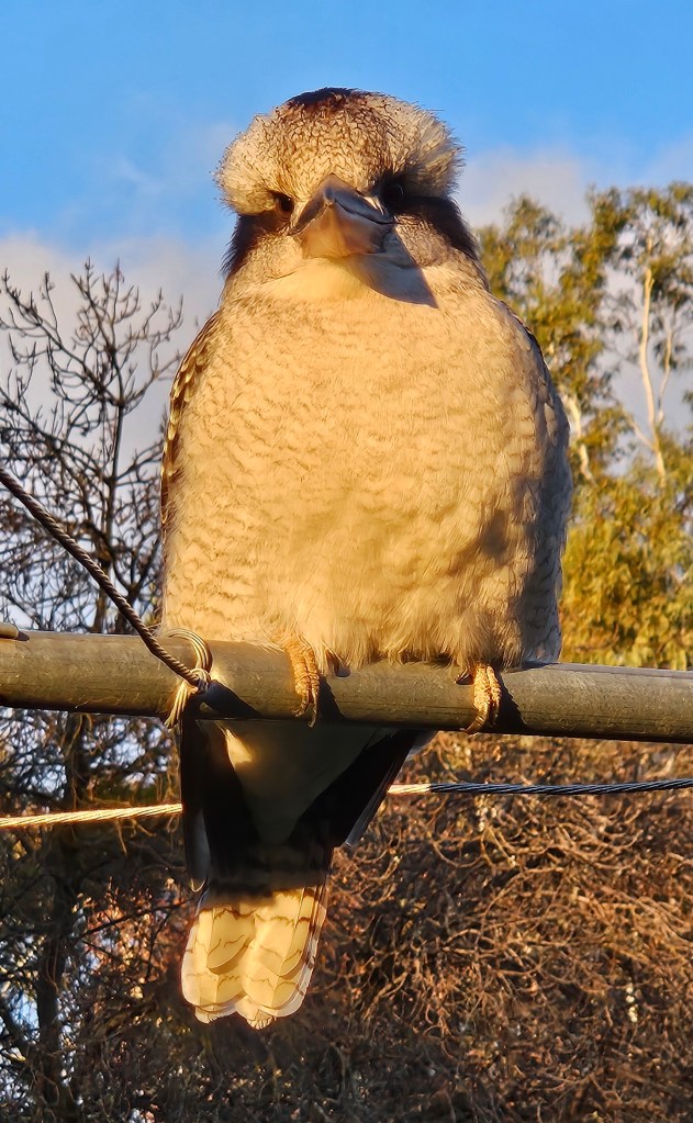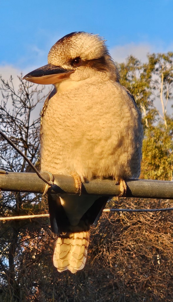 On one of my treks to the laundry, this gorgeous kookaburra was sitting on a clothes line. He or she posed for photos!