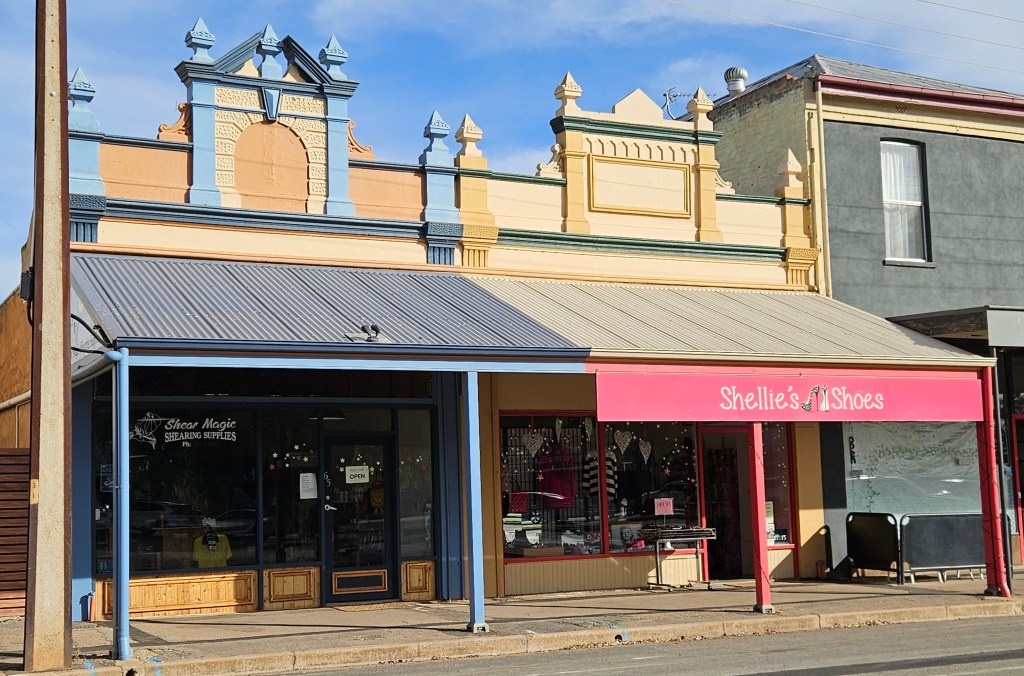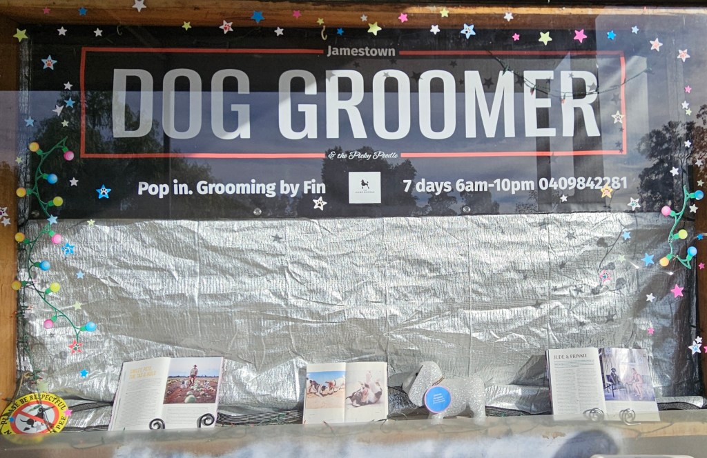 The shop with blue trimmings is Shear Magic Shearing Supplies, which sells anything and everything a sheep shearer might need. I recently bought small Shear Magic dog clippers. Nearby, there is a pop in dog groomer open 7 days from 6am to 10pm. I didn’t notice any dogs about town that would need grooming.
