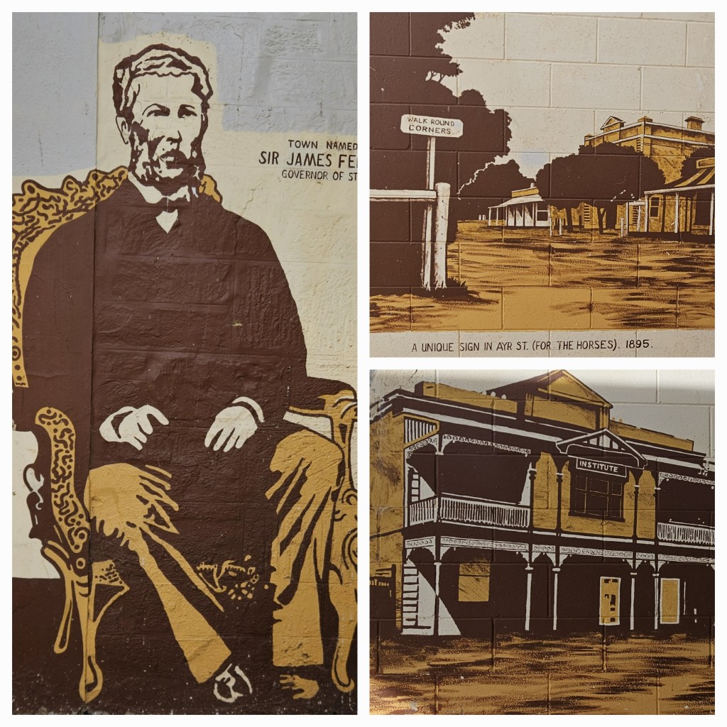 There are three murals beside the former Savings Bank of SA, including a portrait of Sir James Fergusson, the Governor of SA at the time the town was named.