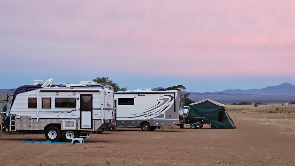We packed up and hooked up, leaving the caravan park at 2 minutes to 10am heading towards Auburn. I had planned a stop at Parafield Gardens, where there is an Aldi store on a stand-alone site, and we were able to find a place to park with the van. We went shopping for merino wool winter clothing during the annual Aldi snow sale. The store had plenty of stock, so hopefully we will keep warm at night in the outback.