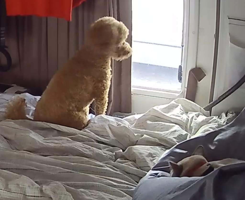 We are running our diesel heater as the temperature at 9pm was 4°C, and it is forecast to drop to -1° with possible frost in the early hours of tomorrow morning. Bluey and Tilly are comfortable on our bed.