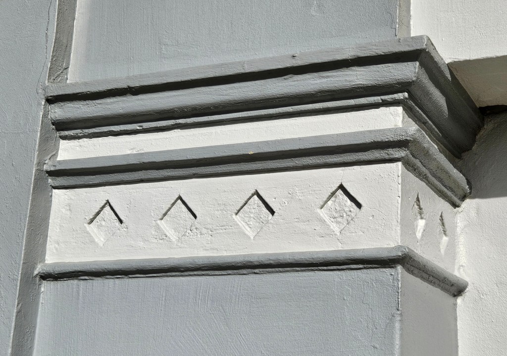 My favourite is the 1933 Art Deco Elmslea Chambers. The facade is a mix of pink granite and decorative colourful terracotta tiles. The building still has its original slate roof.