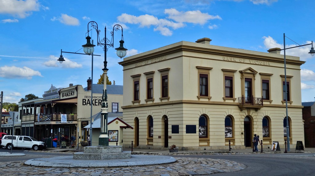 We drove the 20 kms trip to Beechworth and struggled to find a car park. The town has wide streets and several large grand buildings such as the post office, the former Bank of Victoria where the Gold was stored in a vault, and the Commercial Hotel.