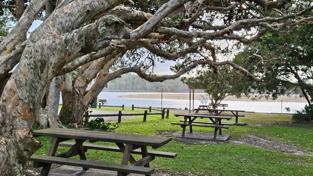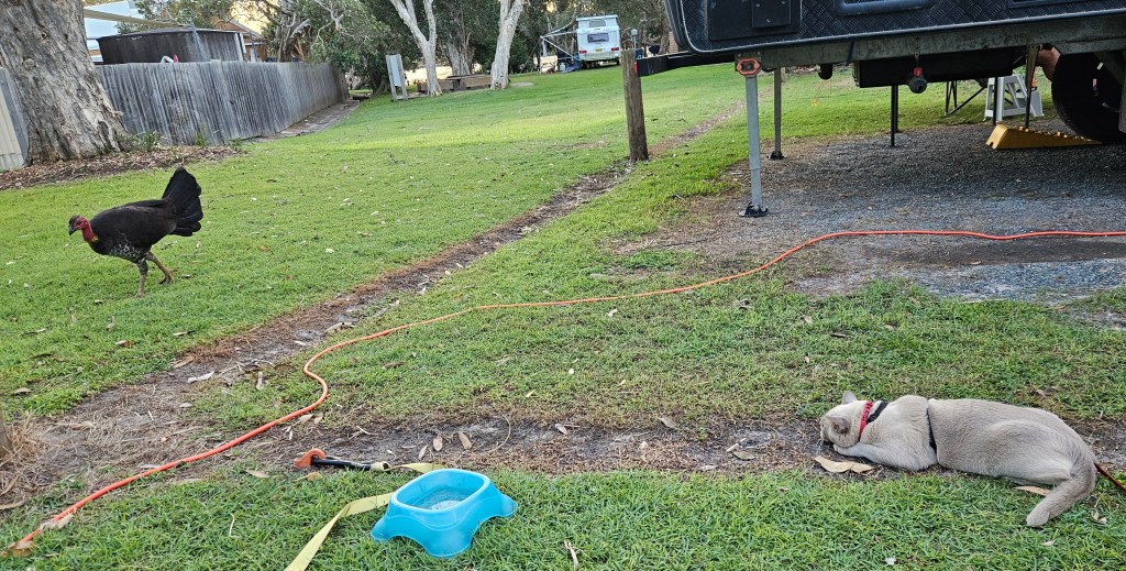 I drove around the block this morning to KK’s Coffee Kart beside the Tweed River. The caravan parks close to the river are a lot nicer than the Ingenia, but they don’t allow pets.