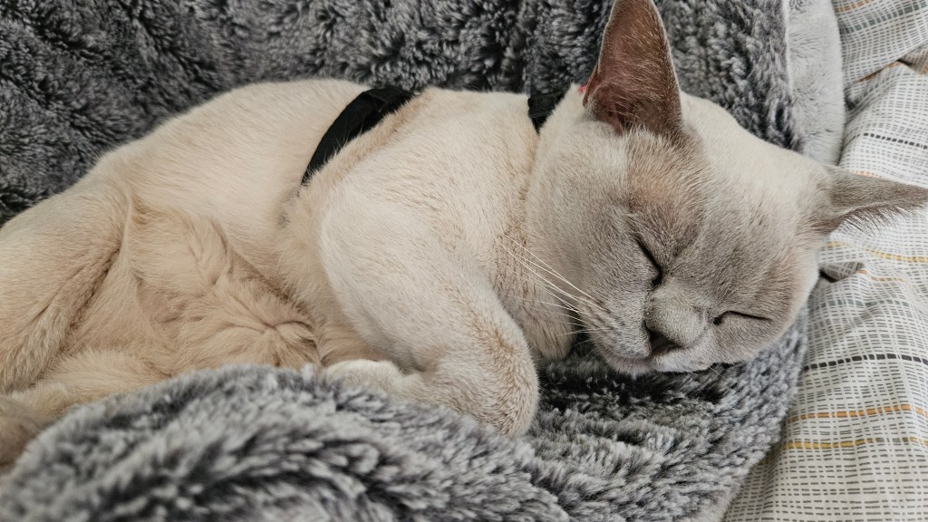 Tilly had her vaccination the previous day. I couldn’t save money taking them together as our regular vet was rationing cat vaccinations. I found another vet with a good supply. After such a stressful time, both critters are zonked!
