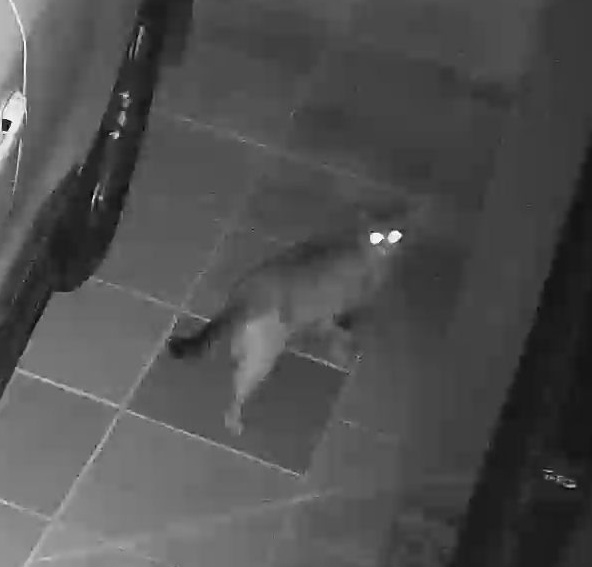 Last night another different cat got a surprise when our carport camera spoke to him/her. The cat turned to look where the voice had come from, and was literally caught in the light. So far as we know, visiting cats have not managed to penetrate the fortifications built around the courtyard.