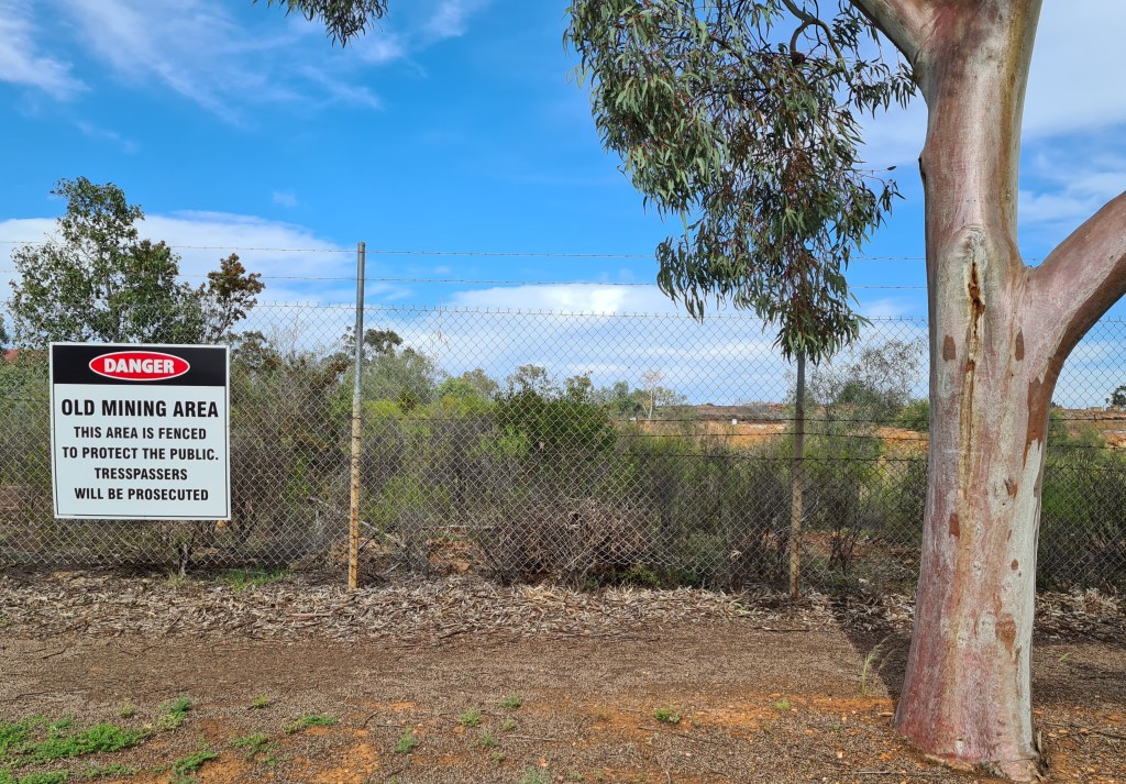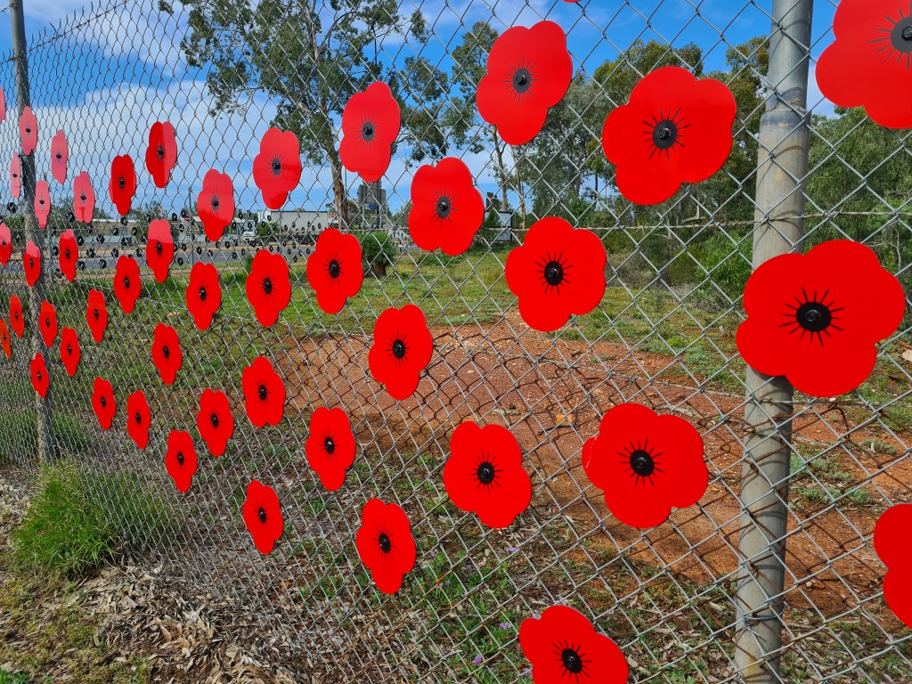 We are camped opposite an old copper mine. I took the second photo through the fence and it looks like an attractive lake. The RSL has placed acrylic red poppies on section of the fence.
