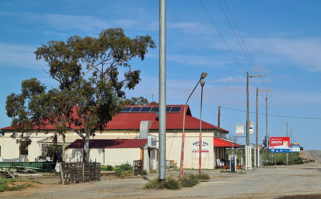 There are few remaining buildings at Cockburn, literally just over the NSW/SA border. In the late 1800s the NSW Government refused to allow SA Railways to operate in NSW. In 1970 the 3ft 6ins railway was converted to 4ft 8.5ins solving the problem, and removing the need for so many workers to live in the town. The population was once 2000 but is now about 50.
