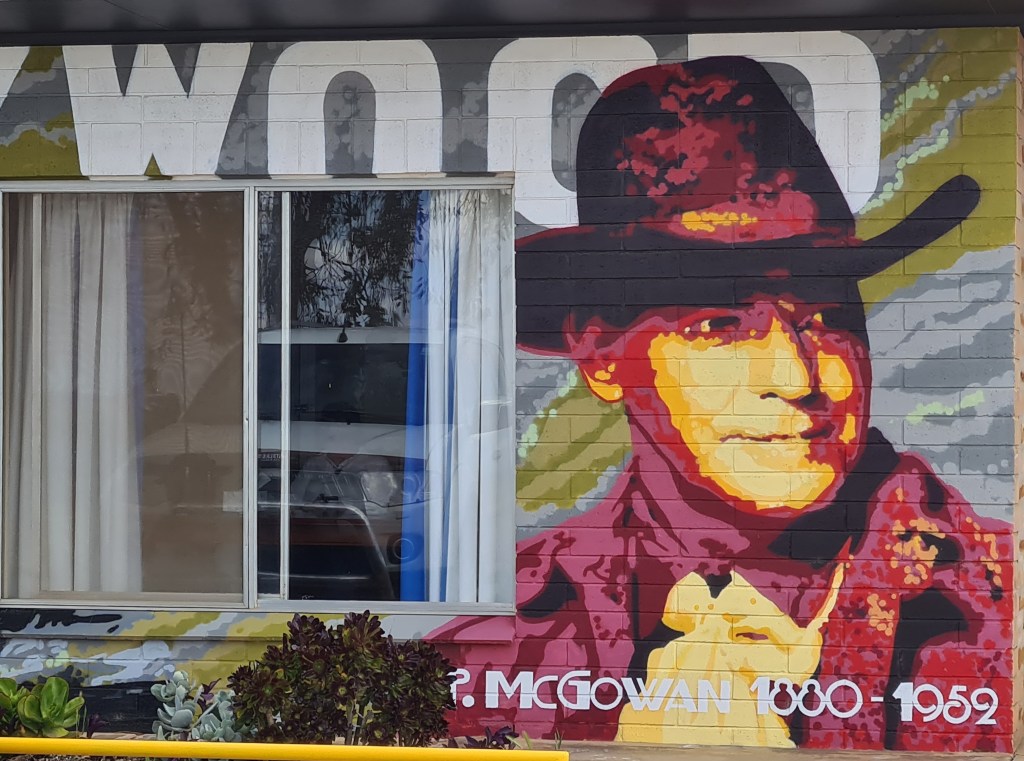 We stopped for fuel and lunch at the BP service station near the historic town of Terowie. We have previously explored the well preserved mostly empty buildings of Terowie, but the motel murals caught my interest. The pioneering Hollywood director JP McGowan was born in Terowie and served in the Second Boer War as a special dispatch rider. He is the only Australian to be made a life member of the Screen Directors Guild.