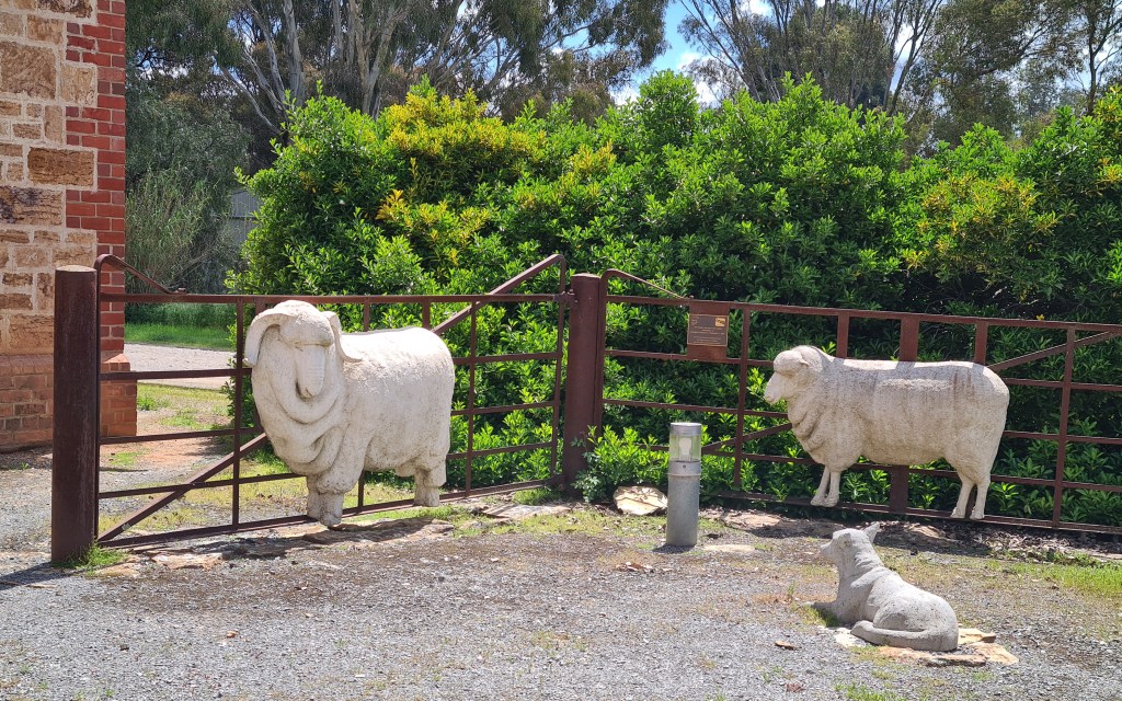 We drove through Hallett with its sheep statues and historic buildings; then onto Burra and Farrell Flat before passing through Clare.