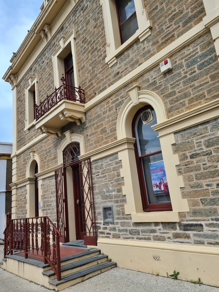 Today was probably our last rain free day for the next few days. We walked around the retail area of Clare, noting several special historic buildings. The Town Hall has intricate Corinthian columns.