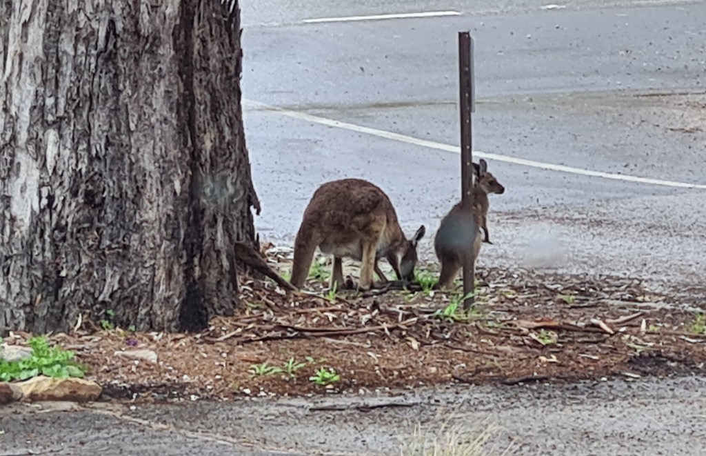 We had a late start so I was lucky to buy the last loaf of white sourdough from Clare Rise Bakery when I went for coffees. As I was driving out I spotted these two kangaroos grazing less than 2m from the Main South Rd. I left by a different driveway to avoid spooking them.